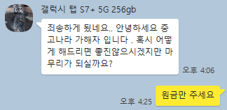 근데 그 당일, 갑자기 모르는 사람이 네이버 채팅을 통해서 내가 갤탭을 산 사람에게