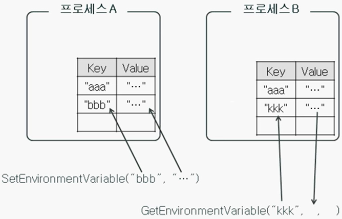 - 사용을 할때는 SetEnvironmentVariable() 함수와