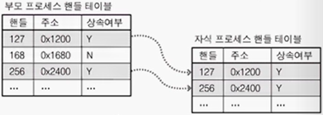 즉, 부모 프로세스의 핸들 테이블 특정 정보를 자식 프로세스에게