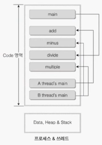 이런 이야기를 하는 이유는, Code 영역이라는 메모리 공간만을 공유하는게 아니라