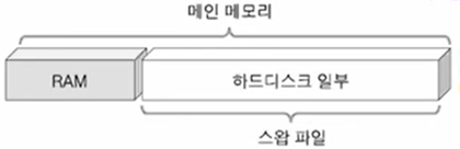 Note) 하드 디스크의 일부까지 메인 메모리의 영역을 확장하고
