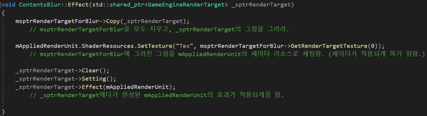 - 이런 부분을 개선하기 위해서 GameEngineBlur를 토대로 ContentsBlur 클래스를 만들고자 함.