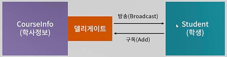 델리게이트의 사전적 의미는 대리자. 즉 위에서 설명한 발행자.