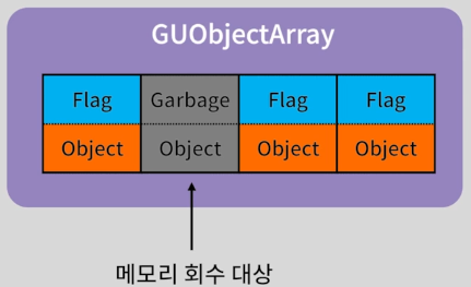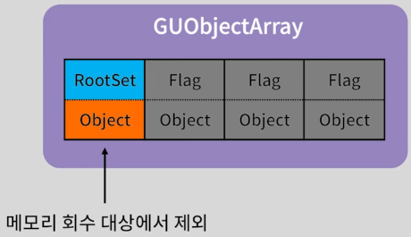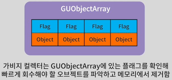 - 관리되는 모든 언리얼 오브젝트의 정보를 저장하는 전역 변수 GUObjectArray