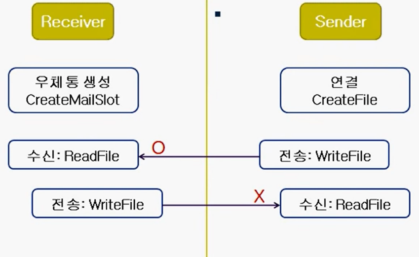 마찬가지로, 리시버 프로세스가 메일 슬롯에 데이터를 넣는다고해서