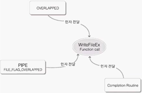- 그래서 WriteFile() 함수와 다르게 WriteFileEx() 함수는