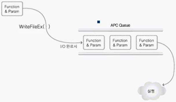 WriteFileEx() 같은 경우에도 APC Queue에 콜백함수(Completion Routine)를 인큐 시킴.
