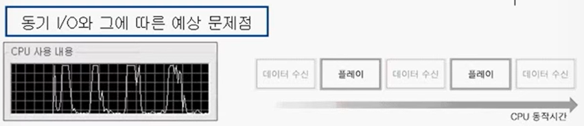 이런 경우를 동기 IO라고 함. 그래서 IO가 끝나야만 플레이하고 IO를 해야지만 플레이 또 가능.