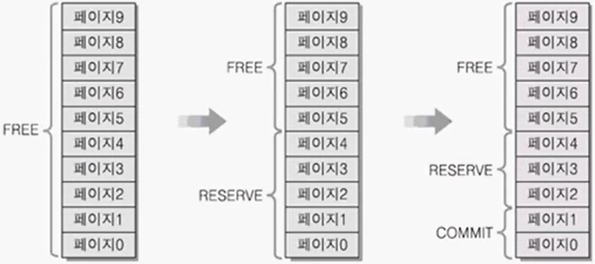 이를 위해서 가상 메모리 페이지 상태에는 RESERVE가 있음.