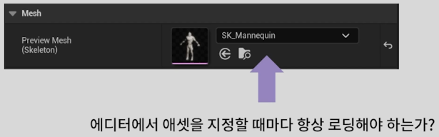 - 게임 제작 단계에서 애셋 간의 연결 작업을 위해 직접 패키지를 불러 할당하는 작업은 부하가 큼.